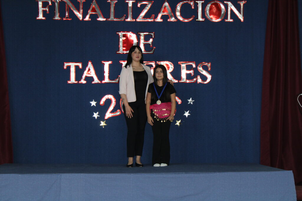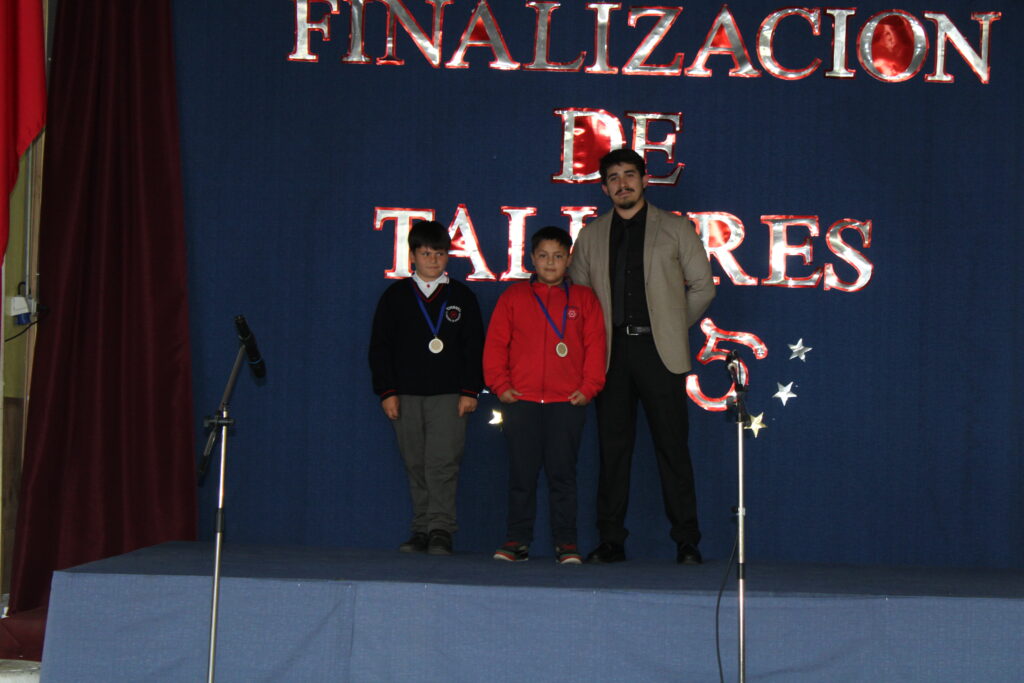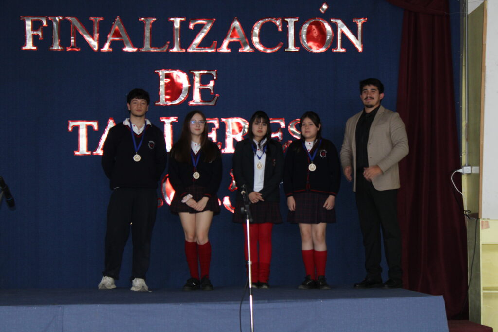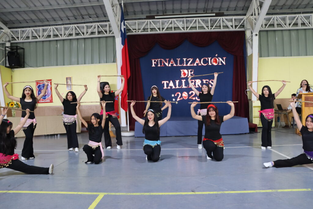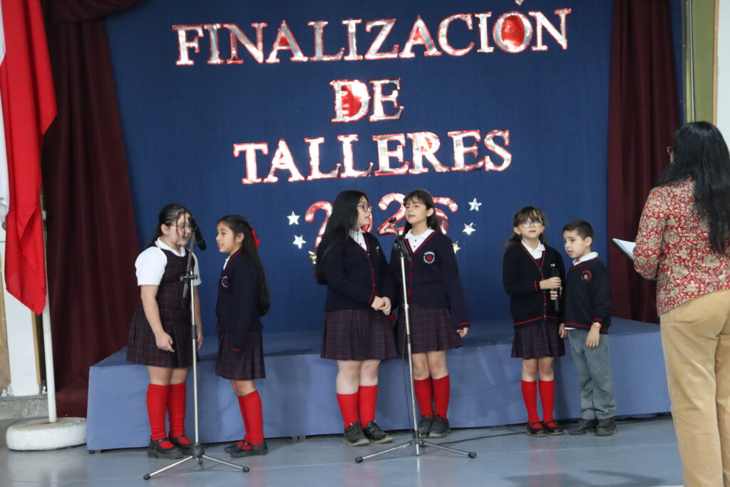 Hoy jueves, se ha realizado el Acto de Termino de Talleres, delante de un marco de profesores, alumnos, padres y apoderados. En el acto se premio a dos alumnos por categoría del taller, uno por asistencia y otro por ser el mejor alumno, esta, fue la oportunidad en que se hizo un resumen del trabajo anual, el que deja una muy buena trayectoria, con muchos lugares en las actividades en que compitieron, por lo que felicitamos a alumnos, profesores, padres y apoderados por los buenos resultados. También destacamos a las alumnas del taller de canto y baile árabe quienes nos deleitaron con unas excelentes presentaciones. Los invitamos a ver nuestra galería.